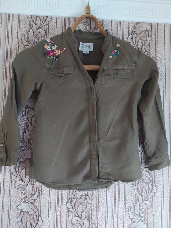 Рубашка темно зелёного цвета.