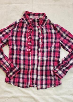 Рожева сорочка на зріст 128-134 Б/у в гарному стані: дефекти відсутні, всі гудзики на місці. При наявності питань - зв'яжіться зі мною. Є можливість самовивозу з центру Києва.