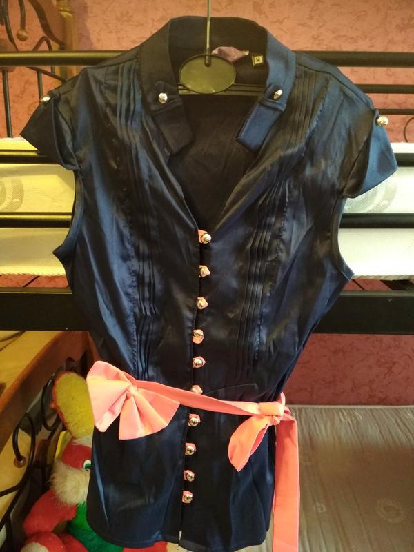Блузка темно- синяя с коралловым.рs-xs.длинна 60,ширина в груди 41,талия 36.