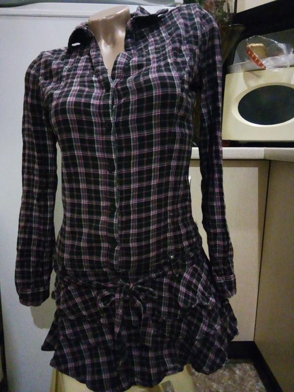 классная рубашка в клетку на рост 158-164,рукавчик можно подкатать,есть поясок