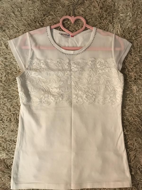 Школьная футболка/блуза для девочки на рост 152 Всё камушки на месте ПОГ 34 см Длинна 50 см