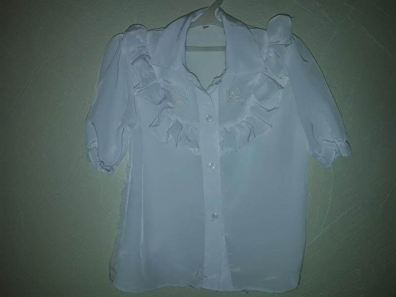 Школьная блузка девочке, состояние идеальное, впереди вышивка, по краю рукава резинка.Длина от плеча до низа 43,5 см ,Пог 36,5 см