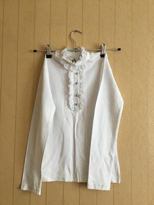 Трикотажная школьная блузка для девочки, отличного качества, производства Турции, идеально подходит для осени и школы и под любой низ. Ткань трикотаж хорошо тянется и отлично садится по фигуре ребёнка, размер на рост 140, новая, цена снижена. На шее сзади застегивается на пуговицу. Шикарная блуза для школы.