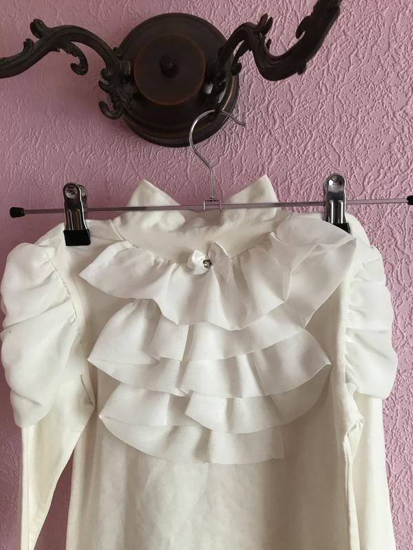 Ошатна, трикотажна блуза для дівчинки, відмінної якості , виробництва Туреччини, ідеально підходить для осені і школи, тканина трикотаж добре тягнеться і відмінно сідає по фігурі.Розмір на ріст 116-122,колір - топлене молоко.Заміри довжина по спинці 46, ширина під рукавами 32, довжина рукава 43;