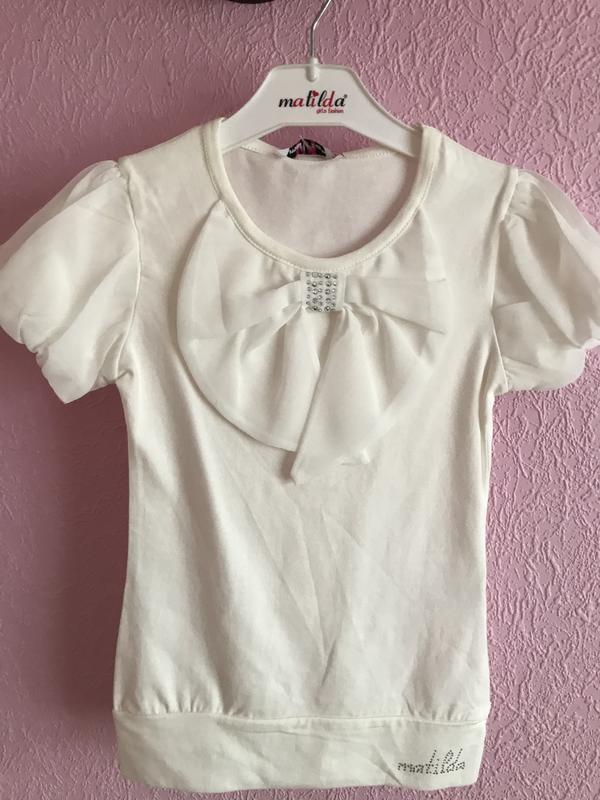 Очень красивая, нарядная блуза для девочки, отличного качества, производства Турции, идеально подходит для осени и школы и под любой низ, хорошо тянется и отлично садится по фигуре,размер на рост 128, дорогая турецкая фирма производитель Матильда.Новая с биркой, цена снижена. Замеры длина по спинке 47-48, ширина под рукавами 33 и тянется.
