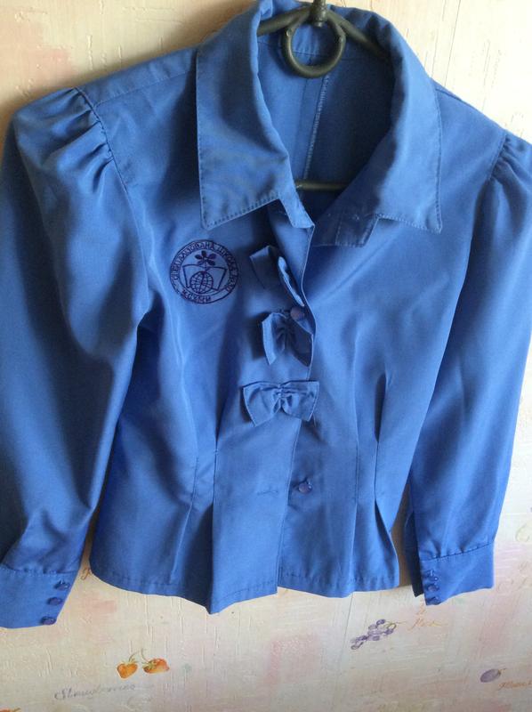 Школьная рубашка для девочки. Ручная работа. Эксклюзив. Шили для 30 школы в г.Сумы. Вручную пришита эмблема. Можно отпороть эмблему и использовать для любой школы. Ткань шикарная попалась.Плотная. Если приходить со школы и сразу вешать на тремпель,то абсолютно не мнётся. Если после стирки в машинке сразу развесить,гладить не нужно. В очень хорошем состоянии. Рассчитана на возраст 3-4 класс