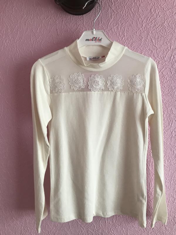 Очень красивая и нарядная блуза для девочки, отличного качества , производства Турции, идеально подходит для осени и школы, верх блузы выполнен сеткой,по которой идут прошитые цветы, смотрится и садится по фигуре идеально, есть размер на рост 128,140,152,164; Цвет- Айвори.Дорогая турецкая фирма производитель- Матильда.