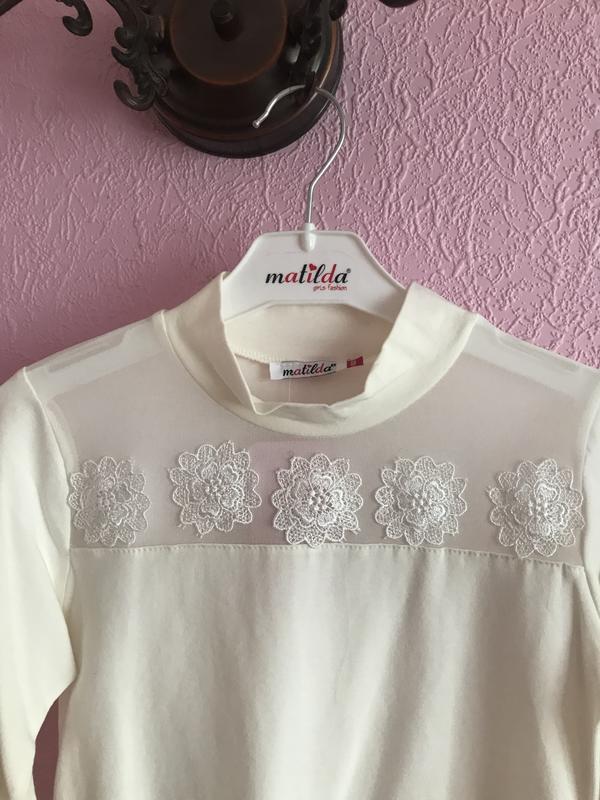 Очень красивая и нарядная, трикотажная блуза для девочки, цвета шампань, отличного качества, производства Турции, идеально подходит для осени и школы и под любой низ, хорошо тянется и отлично садится по фигуре, верх блузы выполнен сеткой, по которой идут прошитые цветы, Шикарная блуза. Есть размер на рост 128,140,164.