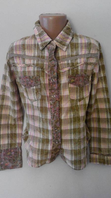 РУБАШКА 100 % коттон, застежка на кнопках. ЗАМЕРЫ ПОГ 40 см , длина 51 см , рукав 51 см с манжетом , его можно отвернуть и тогда длина рукава 54 см