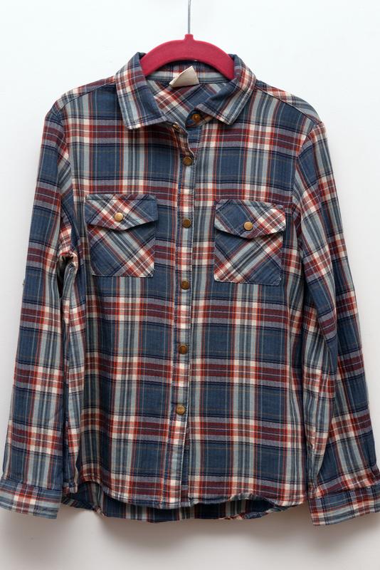 Сорочка на кнопках, рукав підкочується на застібку-кнопку. Розмір 5-6(118). Заміри: ПОГ 32 Рукав 43 довжина 51 плечі 30