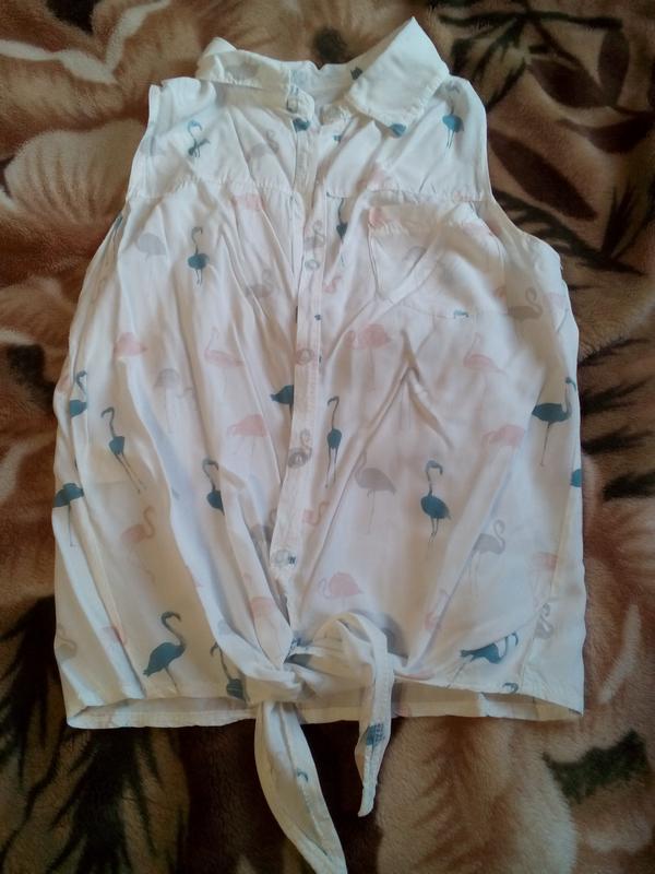 на зав язки,як нова,з фламінго,легенький койтон. Заміри плечі 30,довжина 52,під пахи 44
