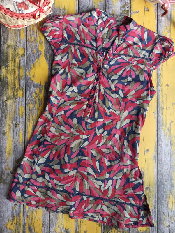 Легкая летняя рубашка для девочки подойдет девочке ростом 128 см (8 лет). Рубашка для девочки выполнена из ситцевой ткани с разноцветным принтом по всему изделию. Воротник стойка, застегивается детская рубашка на пуговицы на планке (не по всей длине), рукава короткий. В данной модели рубашки присутствует поясок. Состав: Сезон: весна/лето. Замер: ширина в груди - 38см, длина по спинке - 61см, рукав от плеча - 6см. Причина уценки: отсутствуют бирки