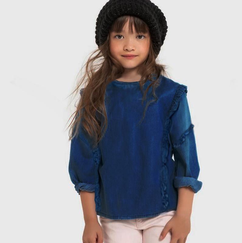 AG Adriano Goldschmied kids denim блуза, кофта из денима Приобретена в США оригинал Выполнена кофта из гладкой хлопковой ткани, средней по плотности. Ткань очень приятная на ощупь и к телу, ребенку будет комфортно и удобно. С длинным рукавом, застежка на пуговицу сзади, отделка-рюши. Подойдет на возраст 2,5-4,5 года. По бике р.4Т