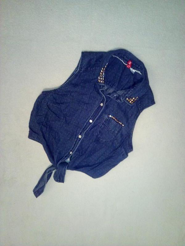 Джинсовая рубашка с завязками,рассчитана на 12-14 лет.Цвет синий.Очень круто смотрится. Без дефектов. Замеры по требованию