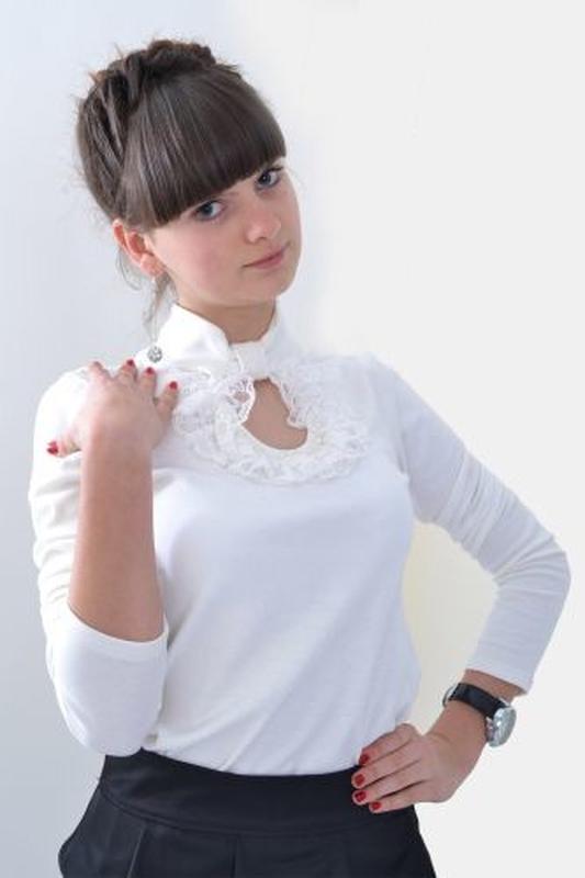 Красивая блуза-гольф в классическом стиле для старшеклассницы, отличное фабричное качество, цвет - молочный!