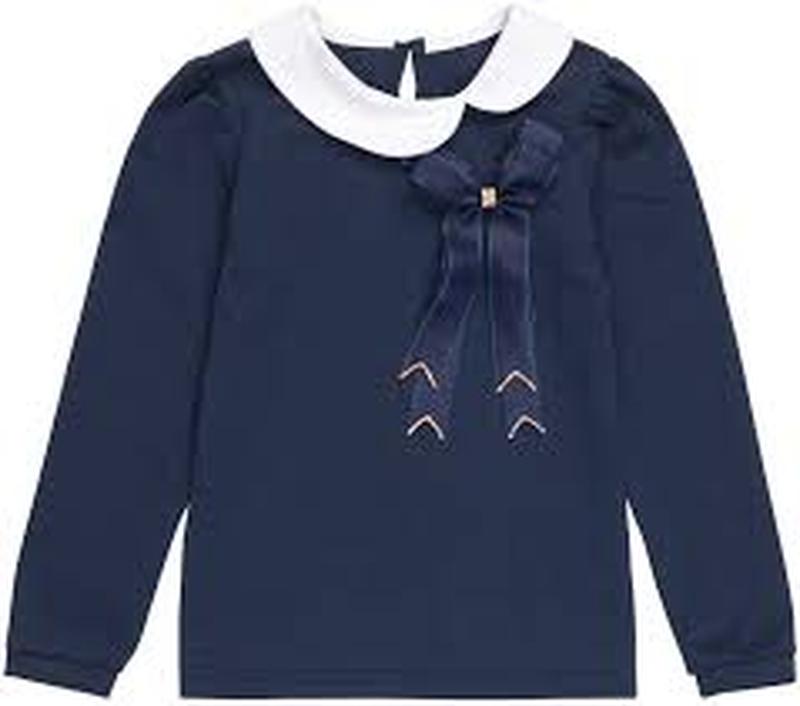 Блуза с бантом синяя Смил Фатиновый бант со стразами отстегивается и получается универсальная классическая блуза. Ткань стрейч кулир -сюид Состав 95% хлопок, 5% эластан Размеры: 122,128,134,140 - 391грн Размеры: 146,152,158,164-421грн