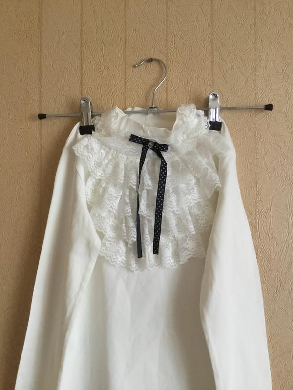 Отличная трикотажная нарядная блуза для девочки, отличного качества, производства Турции, идеально подходит для осени и школы, цвет- Айвори, размер нарост 128-134; смотрится великолепно.