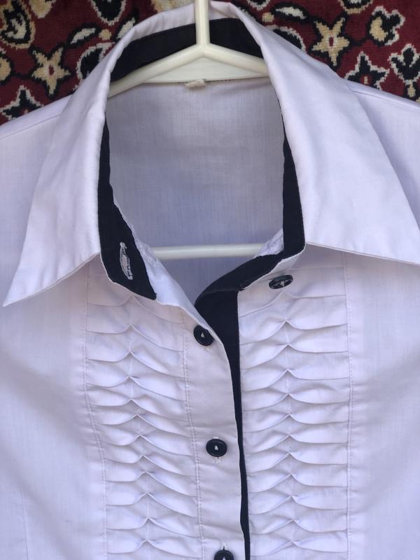 Белая блузочка в очень хорошем состоянии. Размер 140, рукав заворачивается