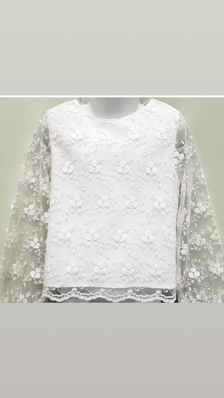 вишукана білосніжна блузочка, для маленької та стильної принцески. стан нової. один раз одягли, потім доця поправилась. заміри надам за потреби