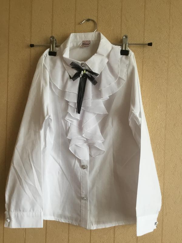 Нарядная очень красивая школьная блуза для девочки, фабричное качество,отличного качества, производства Турции, идеально подходит для осени и школы, новая цена снижена, смотрится великолепно. Есть размер на рост 134,140,146,152. Бантик по желанию можно отстегнуть. Очень мягкая и приятная к телу ткань.