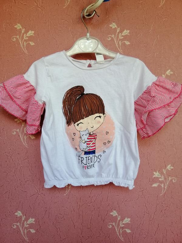 Блузка з об'ємними рукавчиками і милим принтом. Розмір 86-92 см, реально до 96 см. 100% бавовна. Стан ідеальний. На останніх фото одягнута на 3 роки.