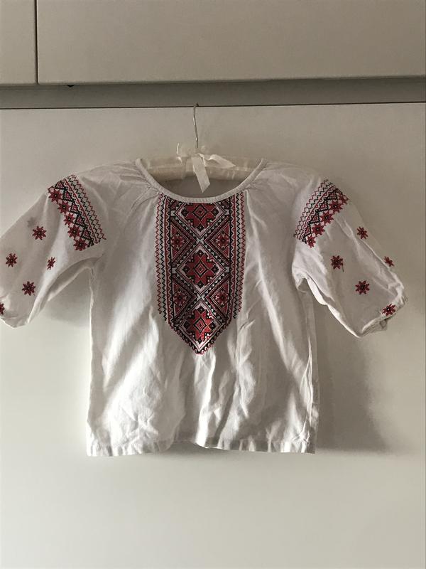 Ткань 100% котон, на рост 116-120 см.Рукав до локтя на резинке,сзади застёгивается на одну пуговицу.