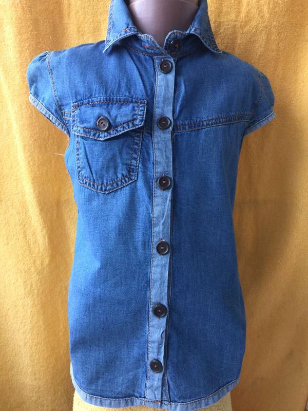 Джинсовая рубашка . Размер 116 ширина груди 33см длина 46см