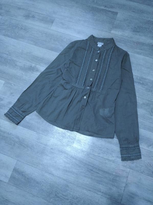 Сорочка на гудзиках для дівчинки колір хакі. Заміри: плечі 30 см, рукав-51 см, пог 36 см, довжина по спині 48 див.