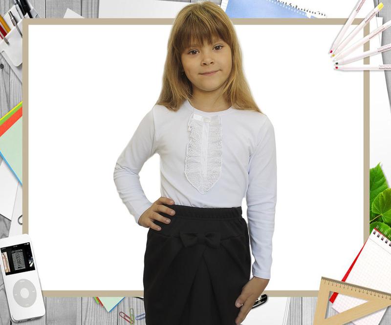 Нарядная блуза для школы с модной жабо Полотно: стрейч кулир пенье отбеленый Состав:95%х/б +5% ликра Таблица размеров Размер Рост Длина изделия Ширина блузы Длина рукава Цена 60 116-122 43 30 38=95грн 64 122-128 45 32 41=110грн 68 128-134 47 34 43,5=115грн 72 140 49 36 45,5=125грн