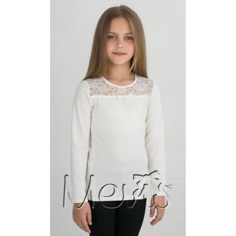 Нарядная кофта для девочки 2175 Mevis Ткань эластичный трикотаж, кружево Цвет: белый, молочный Размеры: 122
