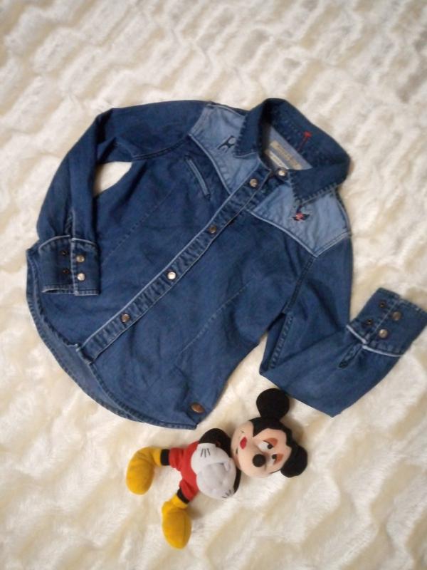 Джинсова рубашечка на дівчинку 4-6 рочків, зріст 116 см. Рубашечка в чудовому стані окрім одної деталі - відсутня зі споду одна кнопочка (фото додала). ПОГ 34см, довжина 45 см, плечики 30 см, довжина рукавчика від плеча 43 см. Дивіться інші мої речі. Торг можливий. Вдалих покупок