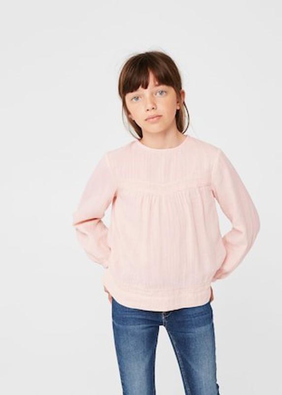 Блузка/туніка MANGO на 4-5 років на р.110. Тканина бавовняна. Фактурна тканина. Зібрана деталь спереду. Декоративна вишивка. Кругла шия. Довгі рукави з манжетами на ґудзиках. Низ із бічними розрізами. СКЛАД: 100% БАВОВНА.
