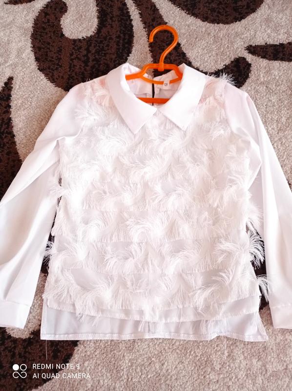 Одягнена один раз в школу. Без ньюансів. Заміри: довжина спереду 42см, ззаду 44см, ширина 32 см, рукав 44 см, плечі 28см