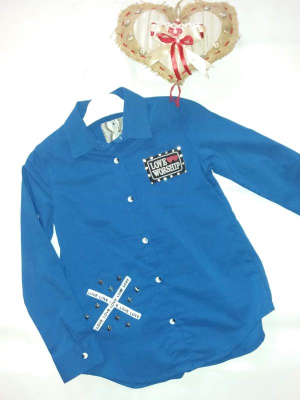 Очень качественная рубашка-трансформер Турция. 100%хлопок. Сзади немного на удлинение и расклешенная. Очень круто смотрится! Цвет-электрик. Украшения-ленты, камни и клепки. Размеры ( длина/плечи/ширина/рукав) (Р.122-128 ) 53/30/37/45 продана (Р 134-140) 56/31/39/49 Оплата на карту Приват банка, Ошадбанка или Монобанка. Пересылка за счет покупателя Новой почтой и Укрпочтой. Наложенного платежа нет! Всем приятного просмотра и выгодных покупок!