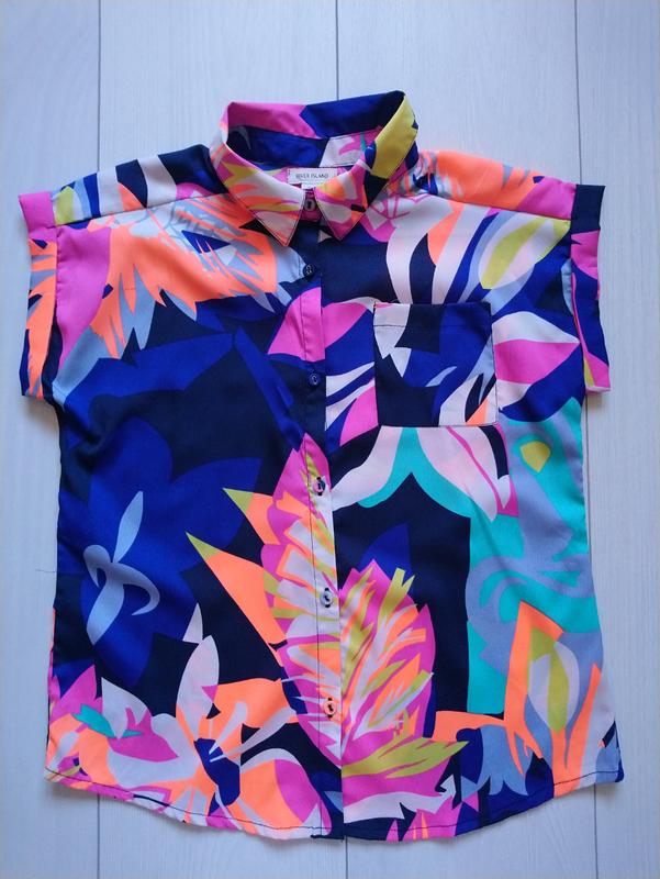 Сорочка фірми River Island в дуже хорошому стані Матеріал поліестр На вік 11 років і ріст 146 см Тоненька Довжина від плеча 54 см Під руками 42 см