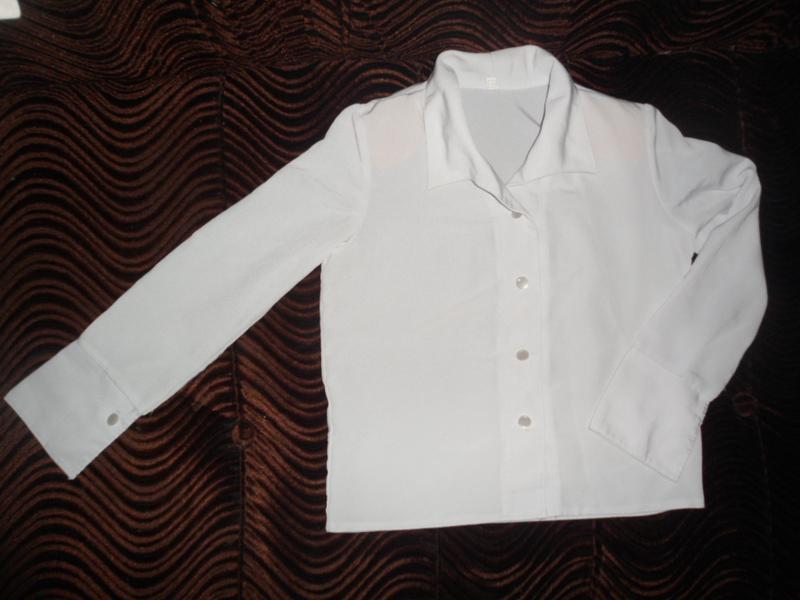 продам блузку для школы шелк р 158. дл 56 см ш 44 см дл.р 53 см можно развернуть будет 60 см. из недостатков манюсенькое пятнышко на рукаве с пшенинку.есть подплечники. торг