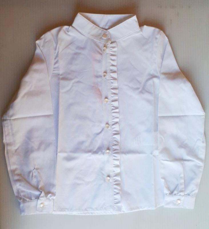 РБ142 Блузка, ошатна з д/р, з рюшею вздовж застібки та коміром-стійкою, терикотон (60% бавовна, 40% поліестер)