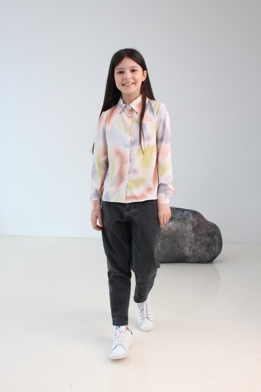 Шкільна блузка Тканина софт Тай дай Всі блузи мають пату рукав 3/4. Розміри 116-122-128-134-140.