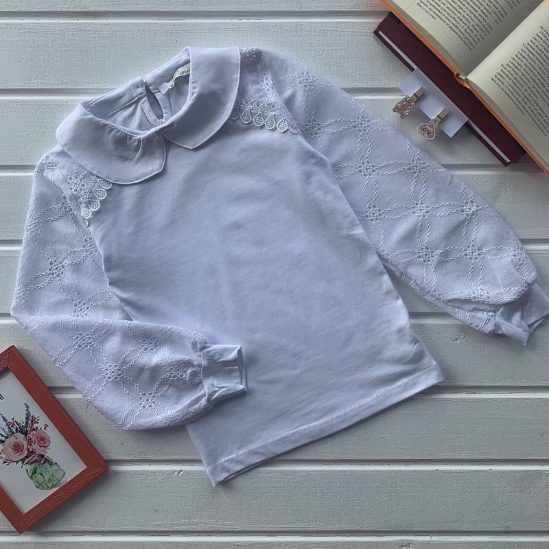 Размеры: 116, 122,128,134 Цвет: белый Страна производитель: Турция Праздничная белая блуза для девочки. Выполнена с натурального, дышащего хлопка. Свободный и прямой пошив подарит ее обладательнице комфорт при длительных прогулках. Рукава декорированные красивым ажурным рисунком.