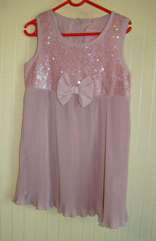 Блузка детская нарядная Next (Размер 134 см (9 лет)) Ткань кокетки, паетки на сетчатой ткани. На тонкой подкладке, низ - меленькое плиссе. Застежка сзади на пуговицах. 100% полиэстер. Размер 134 см (9 лет). Ширина по груди 34 см. Ширина по плечу 6 см. Глубина по пройме 17,5 см. Длина от плеча 60 см. Цена 300 грн.