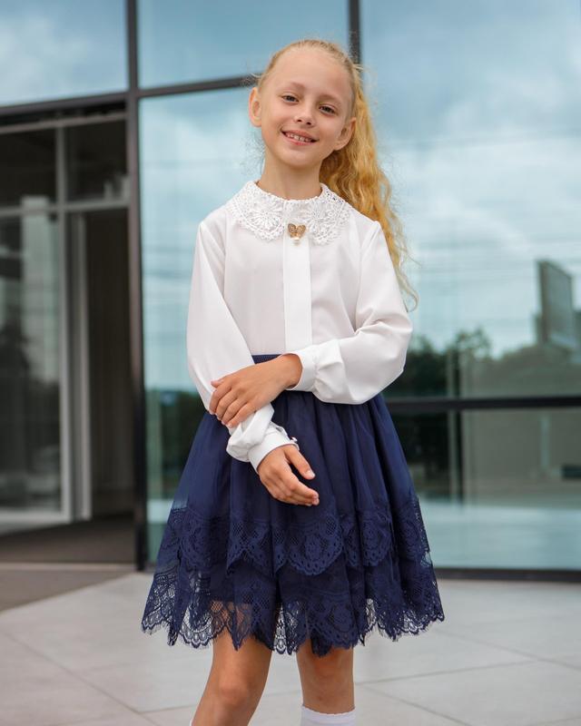 Блуза 400грн Спідниця 400грн Біла нарядна блузка для дівчнки тканина софт + дороге мереживо манжети на рукаві і комірець на гудзику (прикраса може змінюватися) спідниця евросітка + мереживо Блуза 116/122/128/134 довжина 37/40/43/46 рукав 41/43/45/47 пог 33/34/35/36 Спідничка 116/122/128/134 довж 32/35/38/41 пояс 22/23/24/25 похибка +-2см