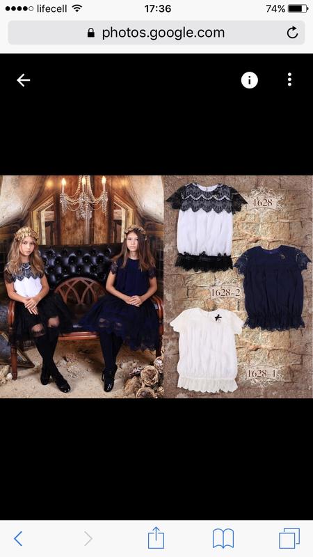 Школьная нарядная блуза Моне 700 грн Белая с чёрным кружевом р.128 Синяя с синим кружевом р.128,134,152
