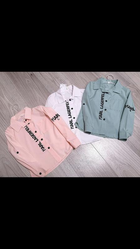 Ткань супер софт. Застегивается на пуговицы. Рукав на манжетах, можно сделать 3/4 Смотрится нереально круто. Размеры: 122р -длина 43см, ширина 36см,рукав от плеча 43см 140р - длина 49см,ширина 39см,руква от плеча 49см. Персик 122р-1шт 140р - 1шт ========= Белая 122р-1шт 140р - 1шт ========== Ментол 122р-1шт 140р - 1шт 😻