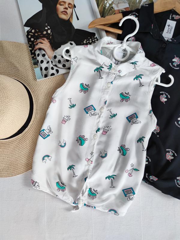 біла сорочка з принтом від C&A для дівчинки 9/10 років на зріст 134/140 см, тканина віскоза, З грудей 34 см, довжина 42 см
