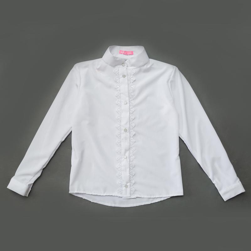 Сорочка - блузка для дівчаток з легкого, ніжного полотна - італійський креп. Склад материалу 65% віскоза, 25% п / е, 10% еластан. Колір білий. Блузка доповнена мереживом макраме уздовж планки. Рукав довгий. Сорочкові кнопки з імітацією перламутрових гудзиків - не залишать слідів, навіть після прання в стирання машині, і принесуть нотку комфорту як дітям, так і батькам. Сорочка створена спеціально для вашої дитини і допоможе підкреслити його стиль. Прекрасний варіант для школи як на кожен день, так і для свята. розміри 128, 134, 140, 146 ВИМІРИ зріст 128 довжина 49см., напівобхват грудей 35 см., довжина рукава 49см. ріст 134 довжина 51см., напівобхват грудей 36 см., довжина рукава 51см. зріст 140 довжина 53см., напівобхват грудей 37 см., довжина рукава 53см. зріст 146 довжина 55см., напівобхват грудей 40 см., довжина рукава 57см.