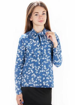 Блузка для дівчаток-підлітків з легкого софта з квітковим принтом. Блузка з коміром-стійкою, зав'язується на бант. Довгий рукав на манжеті. Спереду застібається на перлинні кнопки. Тканина добре пропускає повітря і не сильно мнеться. Модні кольори на будь-який смак. Блуза добре підійде до спідниці і штанів. Полотно: софт. Сосотав: 100% ПЕ. Рекомендації по догляду: праті за температури не більше 30 ° C, гладити при низькій температури без парі.