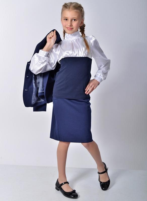 Блуза для дiвчинки з довгим рукавом темно-синя кежуал. Склад: 50 % бавовна , 50 % полiестер. Розмiр: 134 см(9 рокiв) 140 см(10 рокiв)