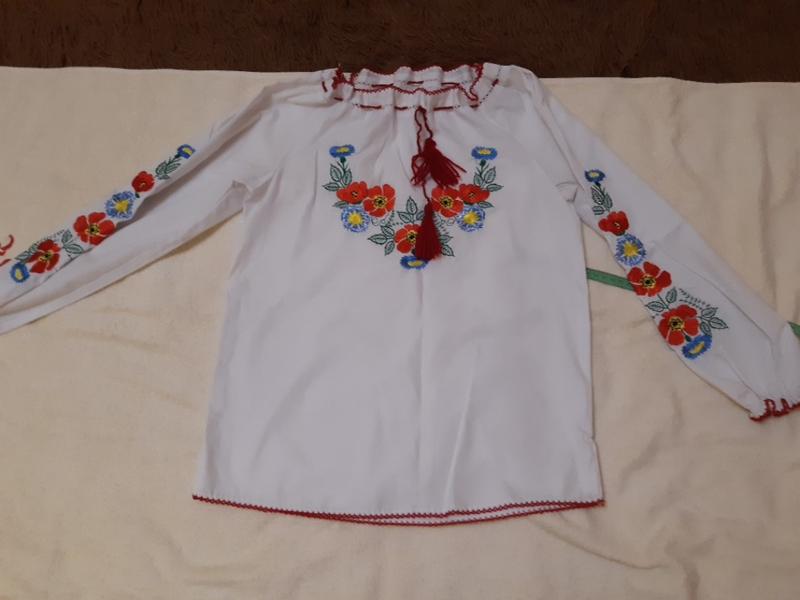 вышиванка на девочку вверх на завязочках удобно регулировать вырез.на рукавах резиночки размер 134-146