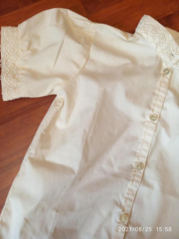 Котоновая блуза рубашка в школу на девочку с обьемными рукавами фонариками вставки гипюра Размер 134 Замеры: пог 40.5см, пот 42см,поб 42ю5см, длина по спинке 54.5см, длина рукава 19см, воротник стойка 4см Цвет айвори