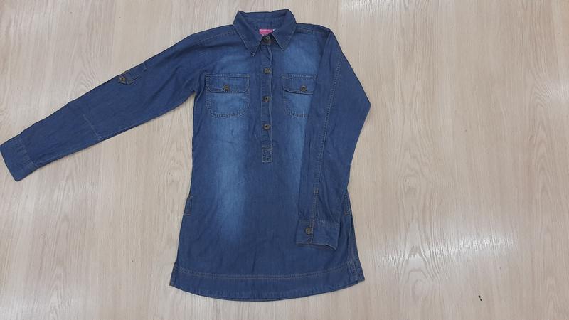 Джинсовая рубашка в хорошем состоянии.На бирке указано на 164 но дочка одевала при росте 152.Замеры по запросу